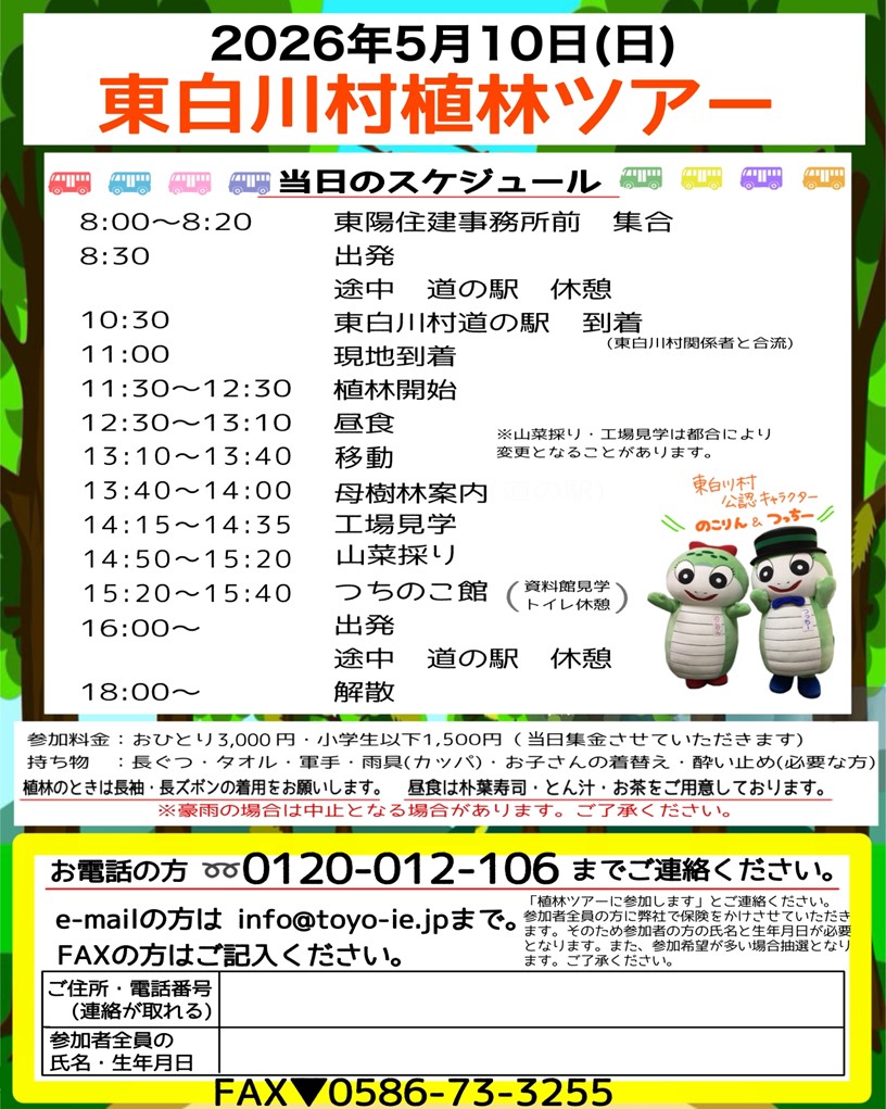 5/10㈰☆東白川村植林ツアー参加者募集中